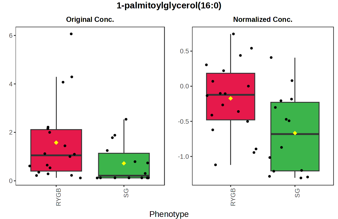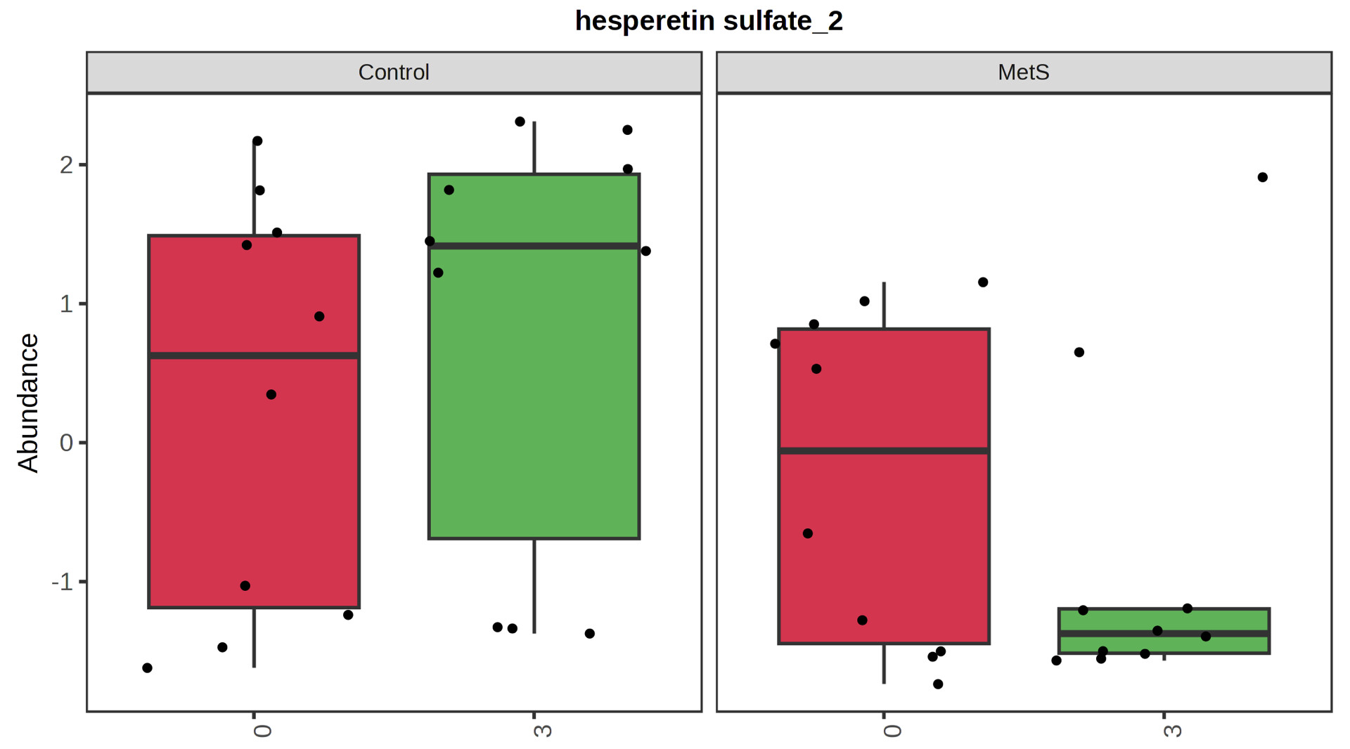 As you can see, I have two different groups at two different times, so I would like to use the time-series + 1 factor approach in order to look for the metabolites that differently change between groups. I expect to obtain something similar to this: